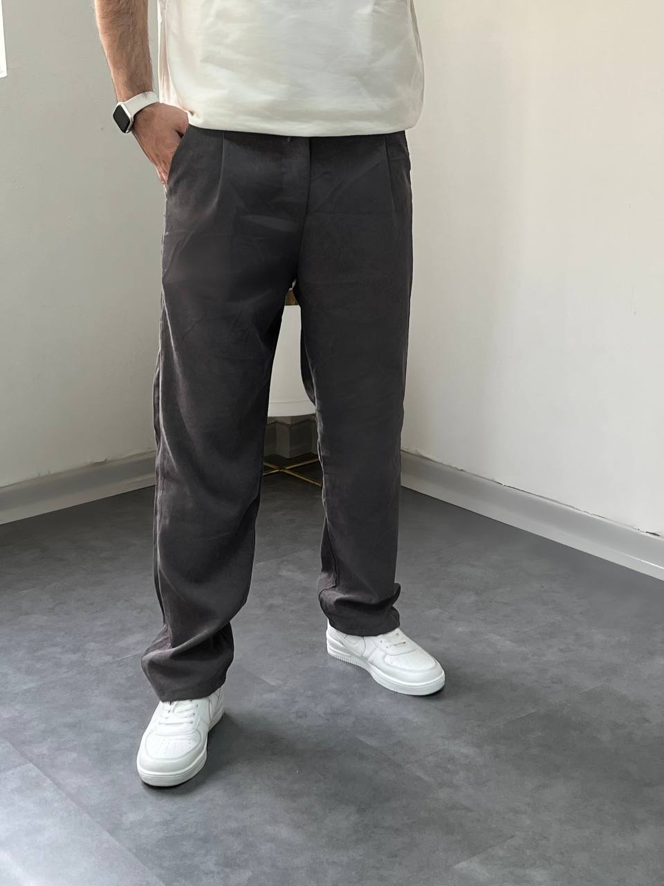 شلوار نیم بگ پارچه کبریتی مردانه